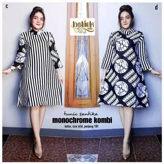 Name: Tunic Santika Monochrome Kombi / Tunik Batik Kerja / Batik Kantoran / Seragam Batik Kantor