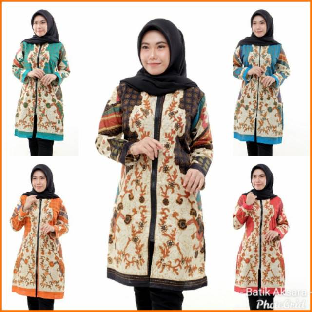Name: Batik Dianputri | Tunic Batik Zipper Depan Motif Sinaran 3 Negri Seragam Batik Baju Batik Wanita Xxl